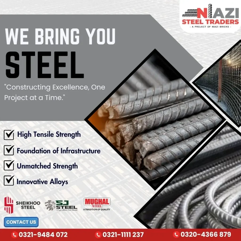 Niazi Steel is one of the best steel manufacturers and suppliers in Lahore. For over six decades, we have provided grades 40, 50, 60, and 80 steel. Get an estimate now!
